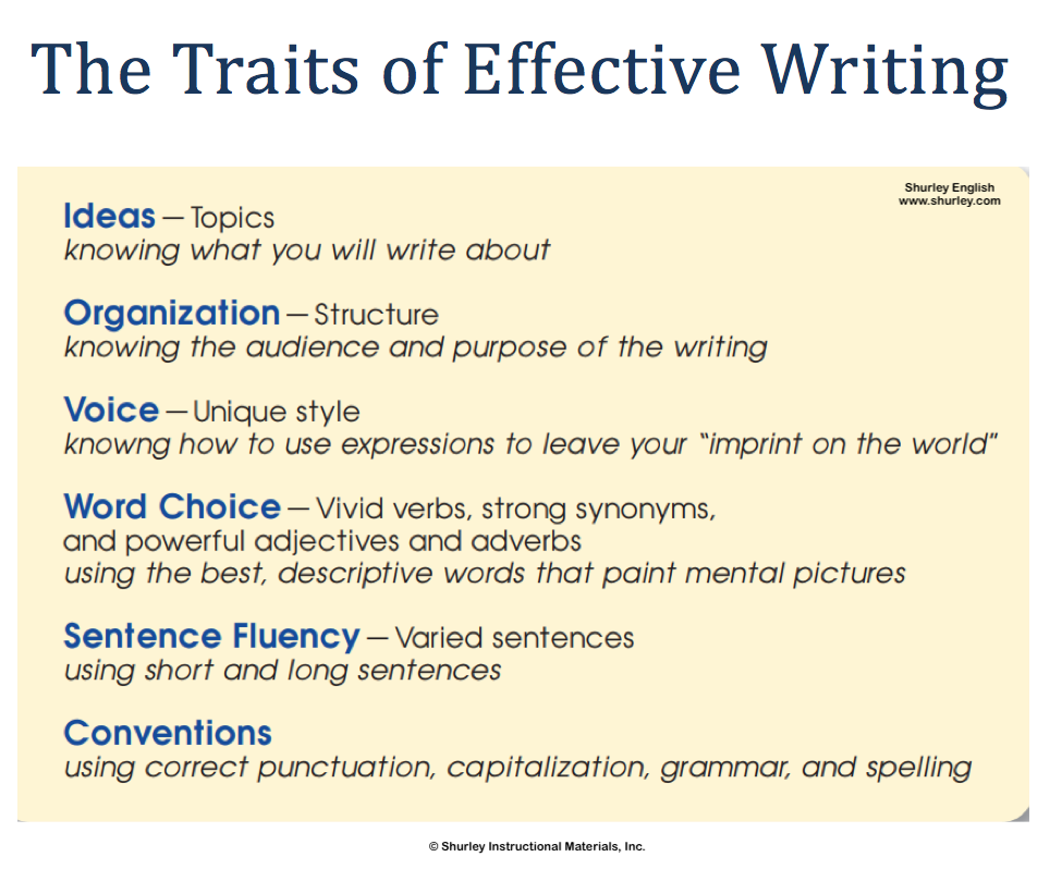That’s where Shurley English makes a huge impact! Each year, our curriculum teaches and reinforces the Traits of Effective Writing so that students have a better chance to develop a strong foundation in the writing process. The curriculum is designed to teach students how to communicate their thoughts effectively and write for all purposes with competence and confidence!