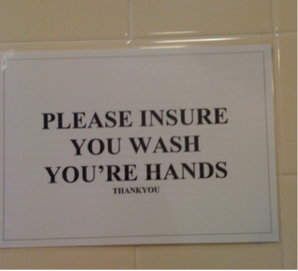 For example, in the sign, the content needs to be handled with formality without sounding stuffy. We can improve tone with this simple fix: replace the phrase “insure you” with a simpler phrase “be sure to.” That makes the message clearer and sounds less stuffy.