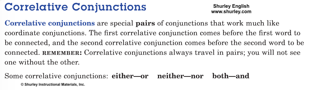 Today, we will focus on connecting two nouns for the purpose of simplification. Remember, the reason for the correlation determines which pair of correlative conjunctions to use. Here are three examples to model for your students that will show them how to associate two ideas in a logical manner.